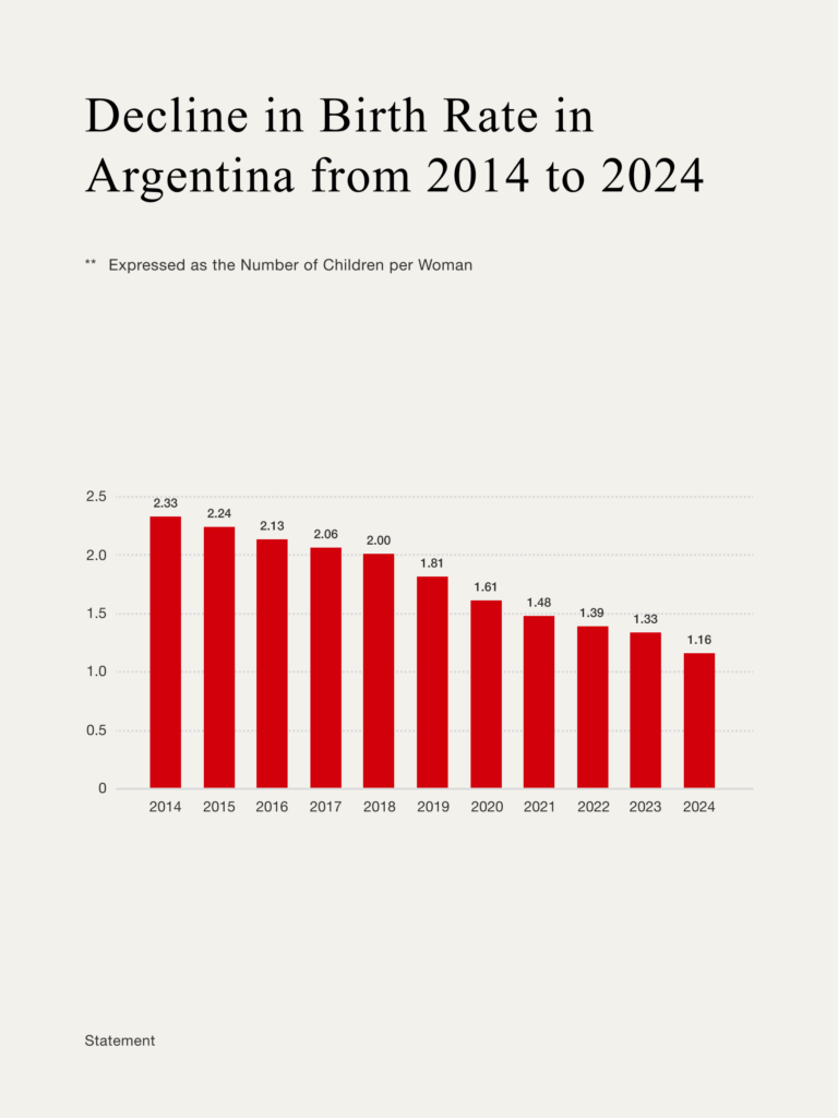 Between 2014 and 2024, Argentina, Pope Francis’ home country, experienced a decline in its fertility rate, going from 2.33 children per woman to 1.16 children per woman. In that same period, the number of live births declined from 777 thousand to 420 thousand, a staggering 45% drop. A similar development occurred in Chile, Uruguay, and Colombia in the past decade.