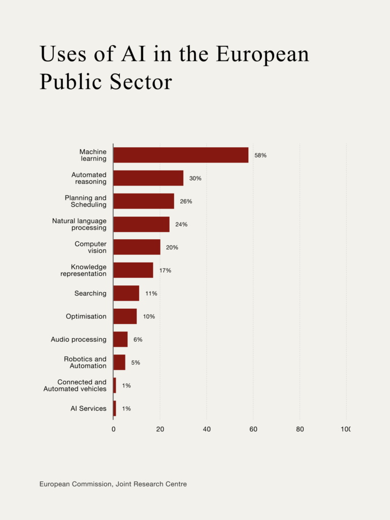 And European public administrations are already specialising AI. Helsinki has incorporated Microsoft Copilot, Dublin uses AI for tourism, Spain’s Catalonia to simplify legal texts, and Bulgaria touts its open-source model, BgGPT. Evidence that public sector use of AI consists mainly of machine learning suggests reliance on predictive analytics for tasks like resource allocation, error detection, and the like.
