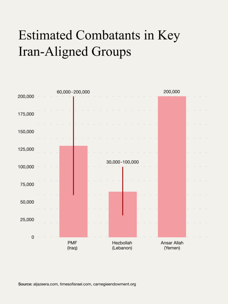 This war would see Iran’s proxies opening multiple fronts, although their specific capabilities are hard to determine, given that estimates of the amount of fighters they have at their disposal vary wildly: