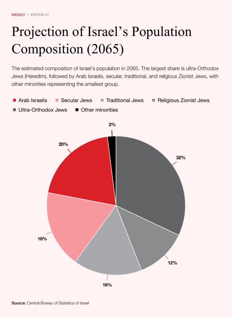 The ascent of Israel’s religious right owes much to demographics. Ultra-Orthodox Jews—or Haredim—now make up approximately 13.9% of the nation’s population, a number that has risen steadily in recent years.
