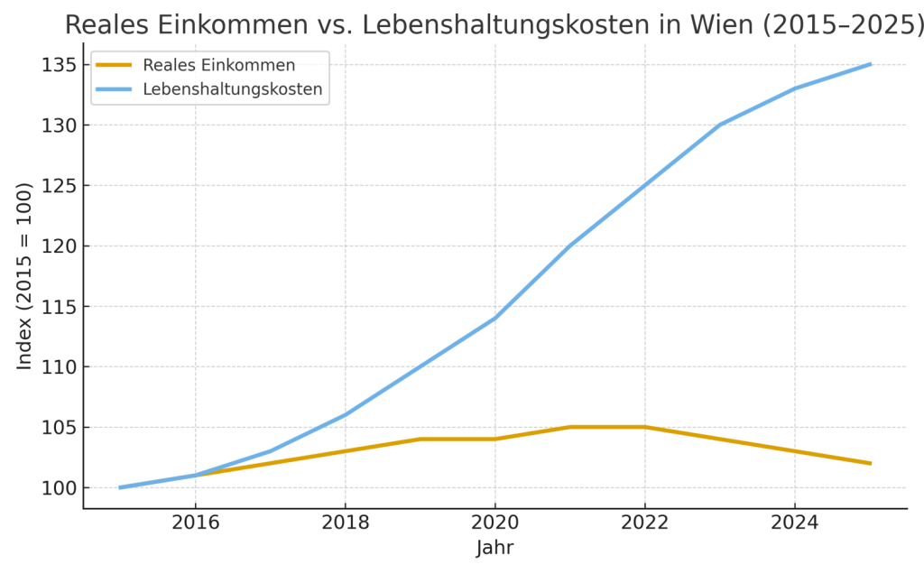 Offiziell sind diese Anpassungen „maßvoll“ und dienen der „Qualitätssicherung“. In Wahrheit handelt es sich um eine Umverteilung über die Hintertür. Denn die Einnahmen aus kommunalen Gebühren stiegen seit 2020 deutlich stärker als die Inflation – während die Reallöhne stagnierten. Laut Statistik Austria hat das frei verfügbare Einkommen der Wiener Haushalte seit 2019 real um mehr als sechs Prozent verloren.