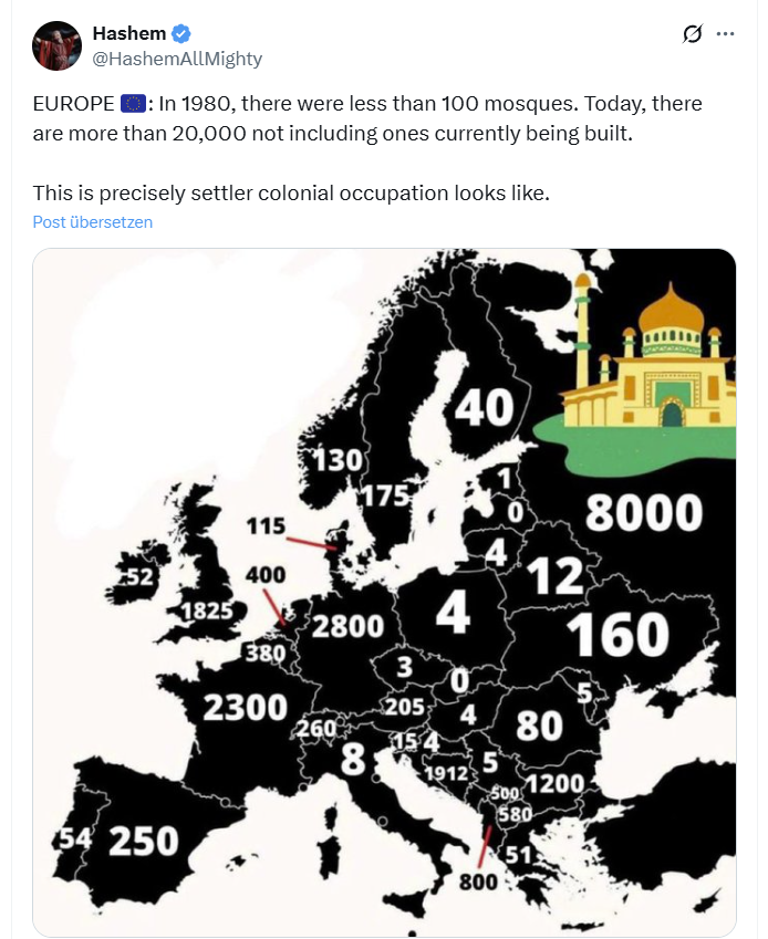 Die europäische Landkarte zeigt heute eine klare Trennlinie. Westlich davon hoch verdichtete religiöse Infrastrukturen, östlich davon kaum sichtbare Strukturen. Länder wie Belgien, die Niederlande oder Dänemark bewegen sich in denselben Größendimensionen wie Frankreich und Großbritannien. In Osteuropa dagegen bleibt die Moscheenlandschaft überschaubar bis nicht vorhanden.
