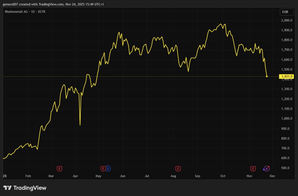 Diejenigen, die sich nicht über einen möglichen Frieden freuen, sind die Aktionäre von Rüstungsunternehmen. Die deutsche Rheinmetall hat in den letzten fünf Tagen mehr als 14 Prozent an Wert verloren. Wenn man nach aktuellen "Trends" investiert, kommt es nicht nur darauf an, den Trend richtig zu erkennen, sondern vor allem darauf, frühzeitig auszusteigen, wenn die Stimmung am Markt kippt.