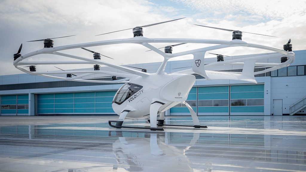 Der "Volocopter" sieht futuristisch aus, wie ein kleiner Hubschrauber ohne Leitwerk. Angetrieben wird das Lufttaxi aus dem deutschen Bundesland Baden-Württemberg über 18 Rotoren, die kreisförmig angeordnet sind. Seit 2011 tüftelten Ingenieure und Techniker an dem Luftfahrzeug, das in Europa als größter Hoffnungsträger in Sachen Flugtaxis gilt.